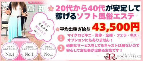 メンズエステ出稼ぎ|初めての風俗メンズエステの出稼ぎは高知のリラックスへ