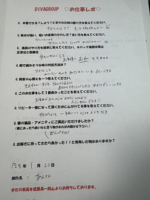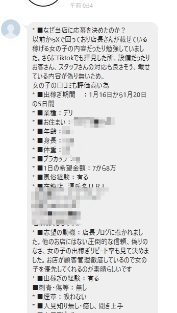 凄く丁寧に応募がありました。「稼げますか?」「交通費出ますか??」等ではなくしっかりとお店を調べたうえでの応募、こういう方は稼げる確率が非常に高いです!!