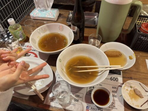 ラーメン、ぎょうざ2人前、おでん、ビールでした。
