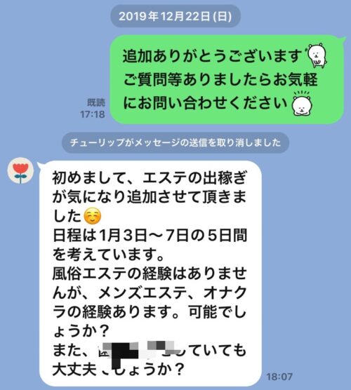 彼女が初めてLINEくれたのが2019年12月の22日・・・