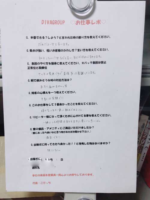 ■待機:寮で1人待機、宿泊も1人で基本他の女性と会いません。
