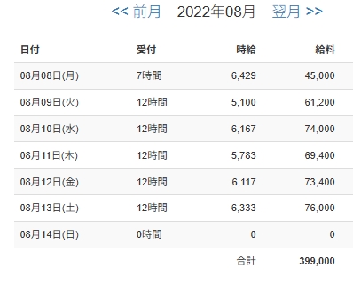 ■出稼ぎ期間:8月8日から8月14日の7日間