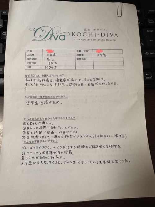 なぜ、彼女は高知の当店を出稼ぎに選んだのか??