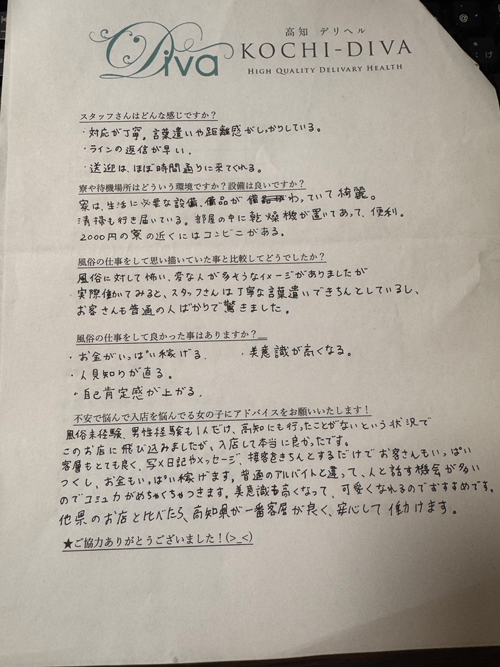 他県のお店と比べたら高知県が1番客層良くて安心して働けます。