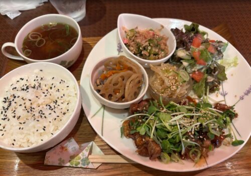 こういう健康的な食事が取れます。自分で取るタイプです。これで1000円位