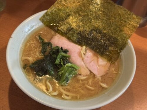 お昼はいつも行列。家系ラーメン。味が濃い。麵が太い!!